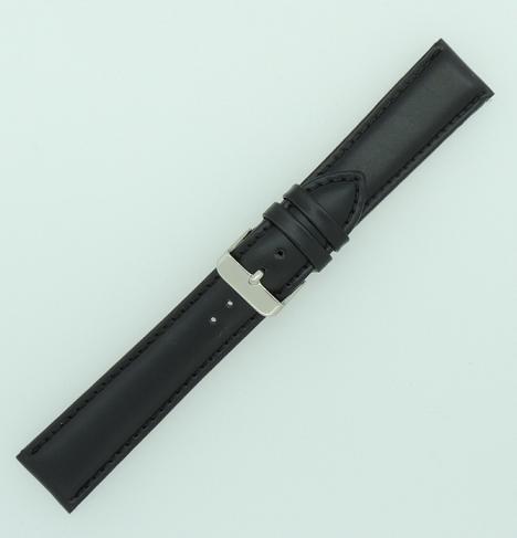 : Black 24mm Plain Calf Leather Strap (Nagata), SS Buckle